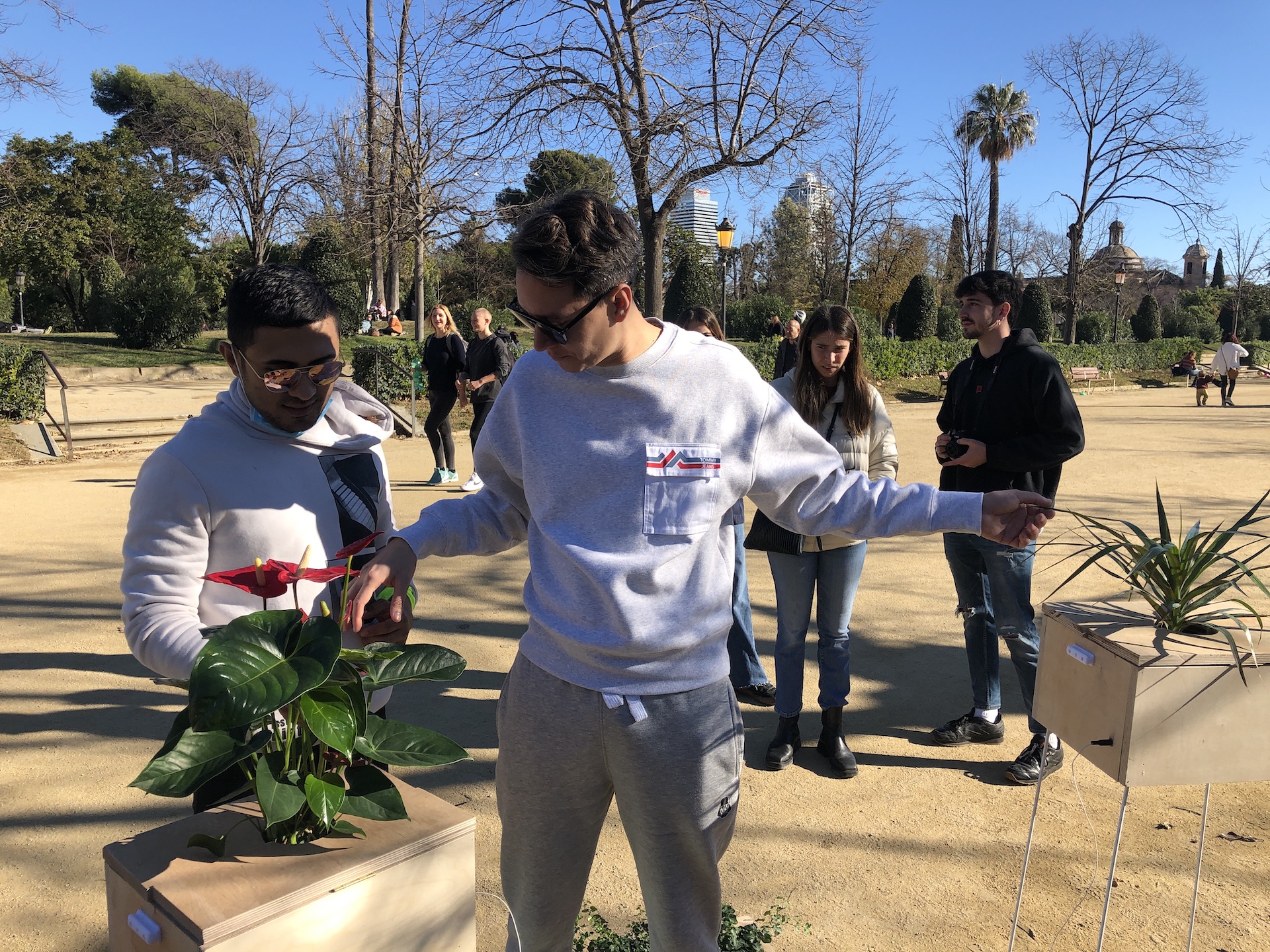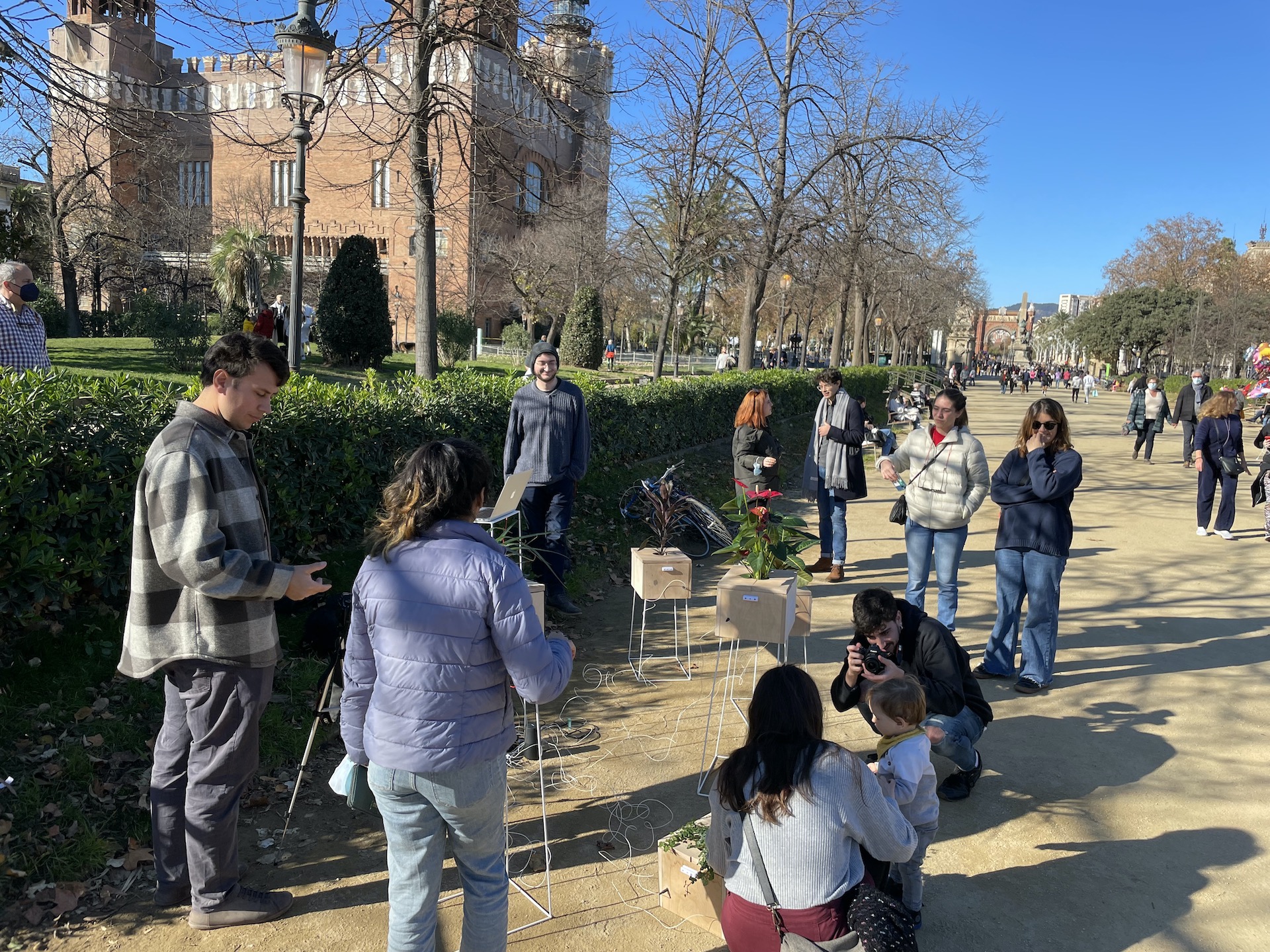 On the day of our intervention, which was Sunday, 12 Dec, we were blessed with a beautiful weather and a calm Sunday noon vibe in Parc de la Cuitadella, where a lot of families went for a walk. Already while setting up, people stopped and asked to interact with the plants. We'll let the images below speak for themselves.