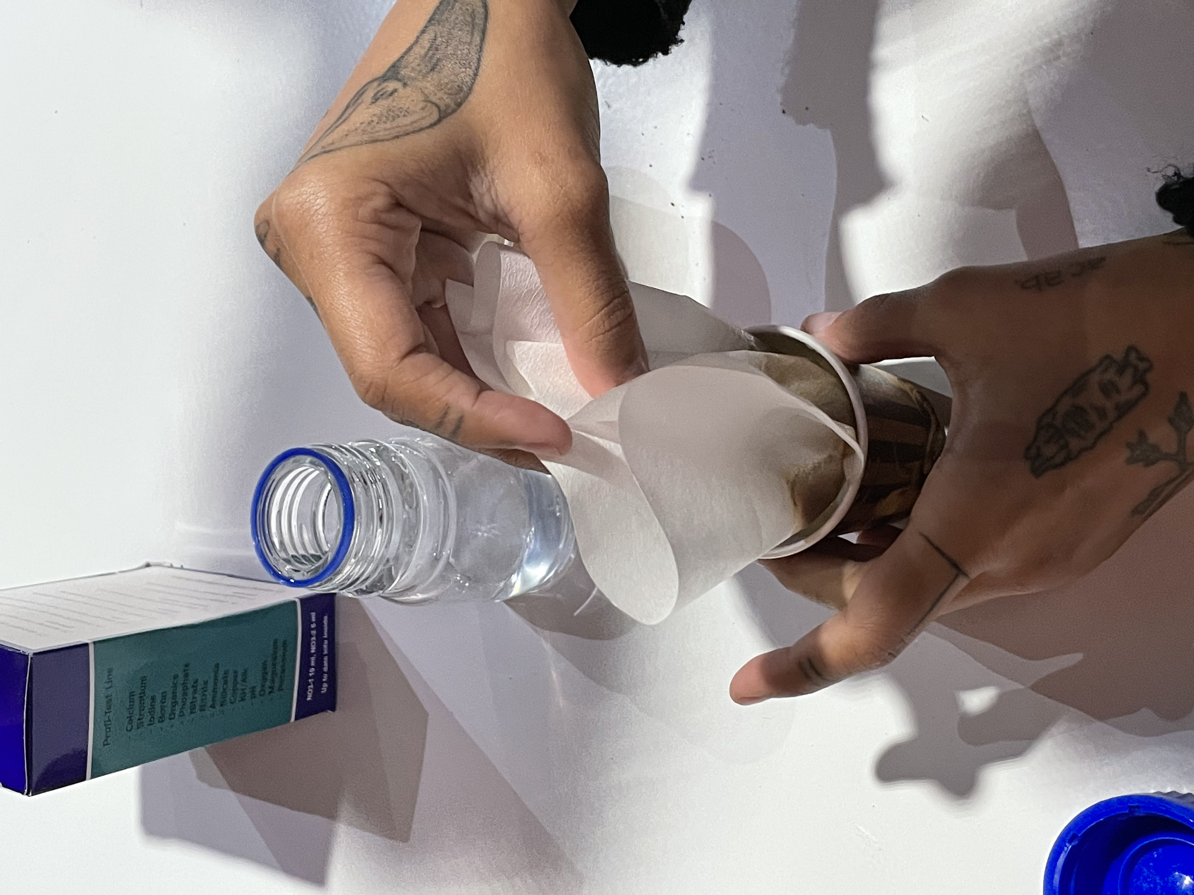 PH Tests of old (depleted) soil (left) and fresh, nutrient-rich hummus from Valldaura (right).