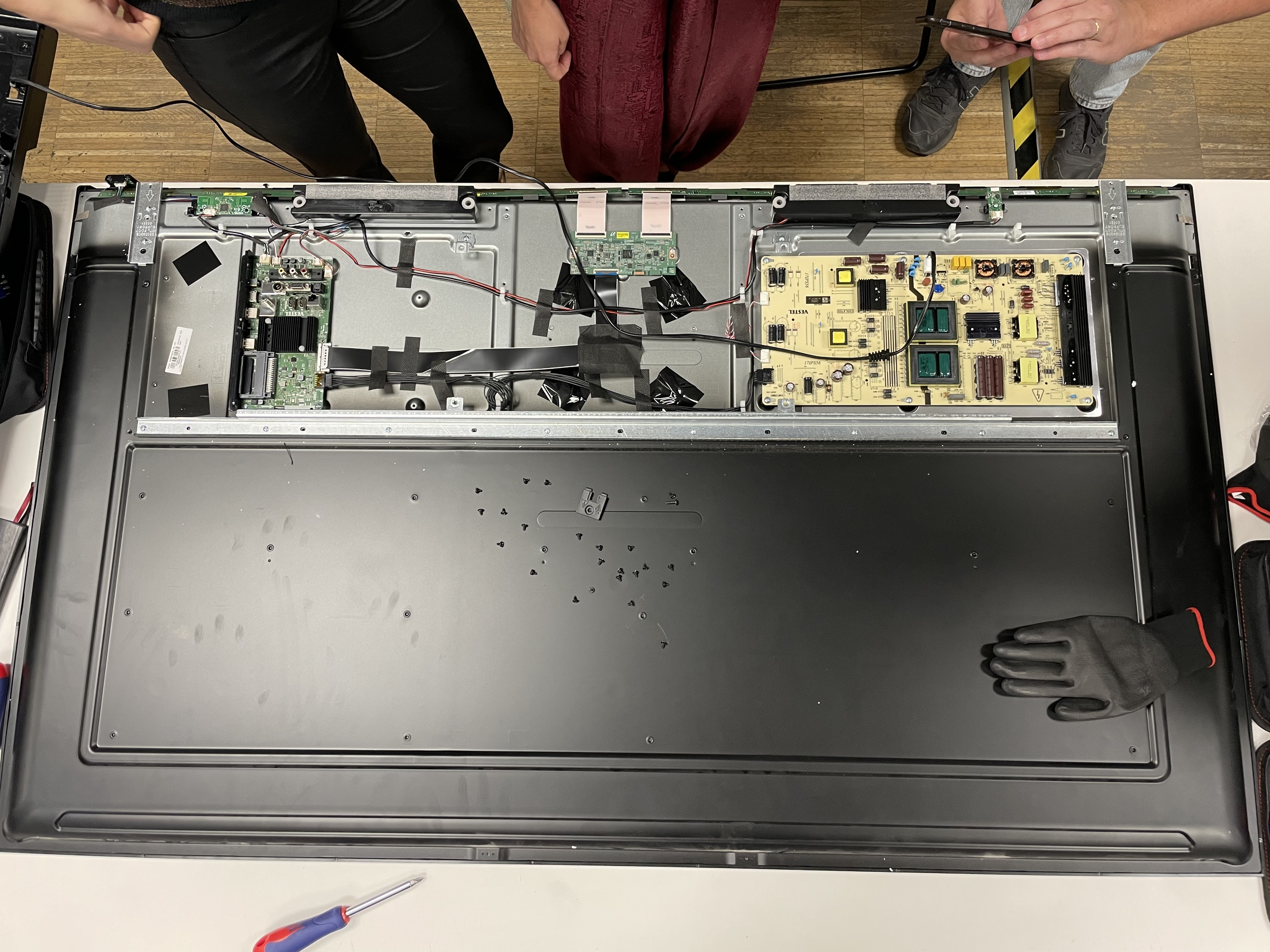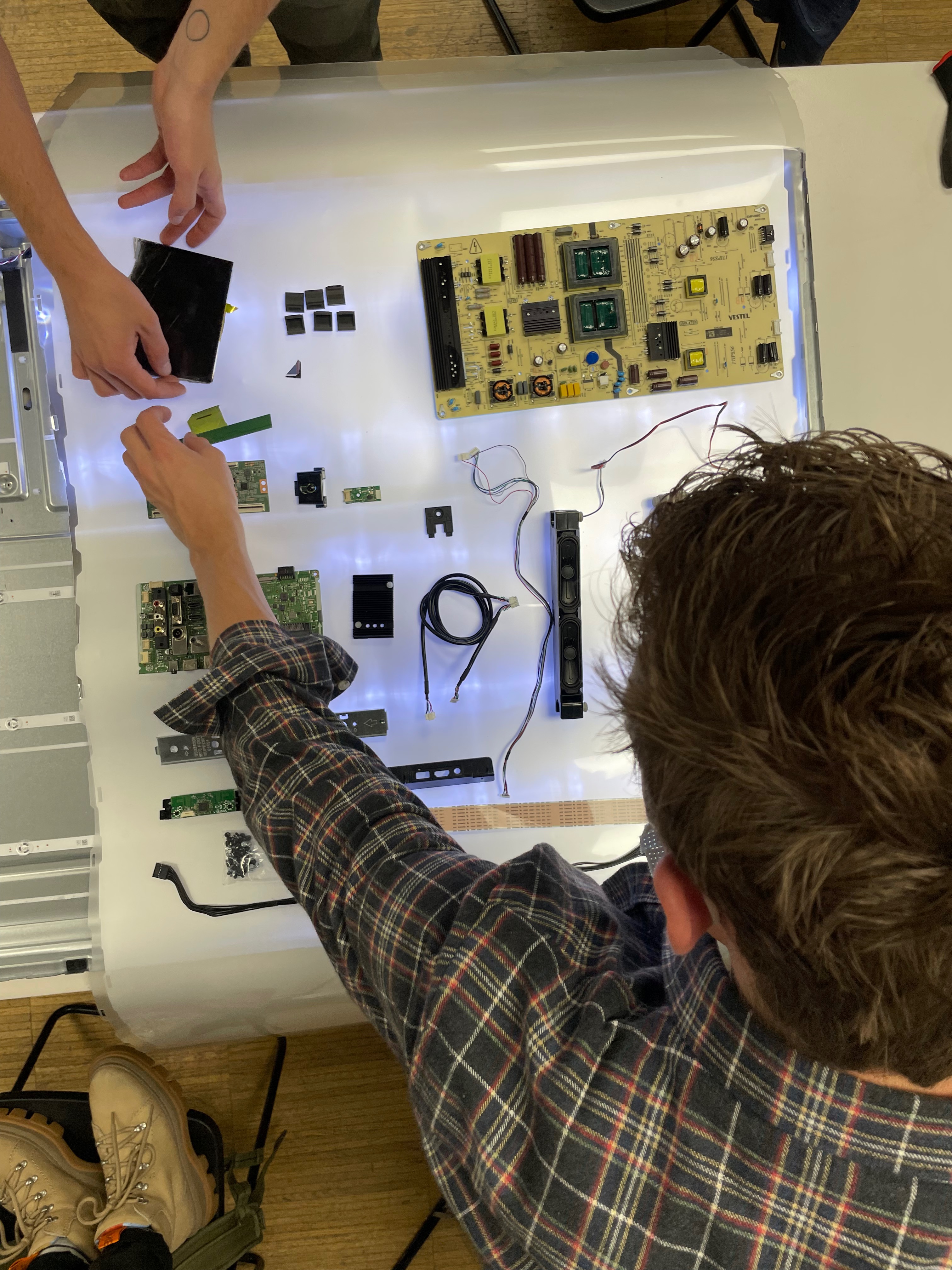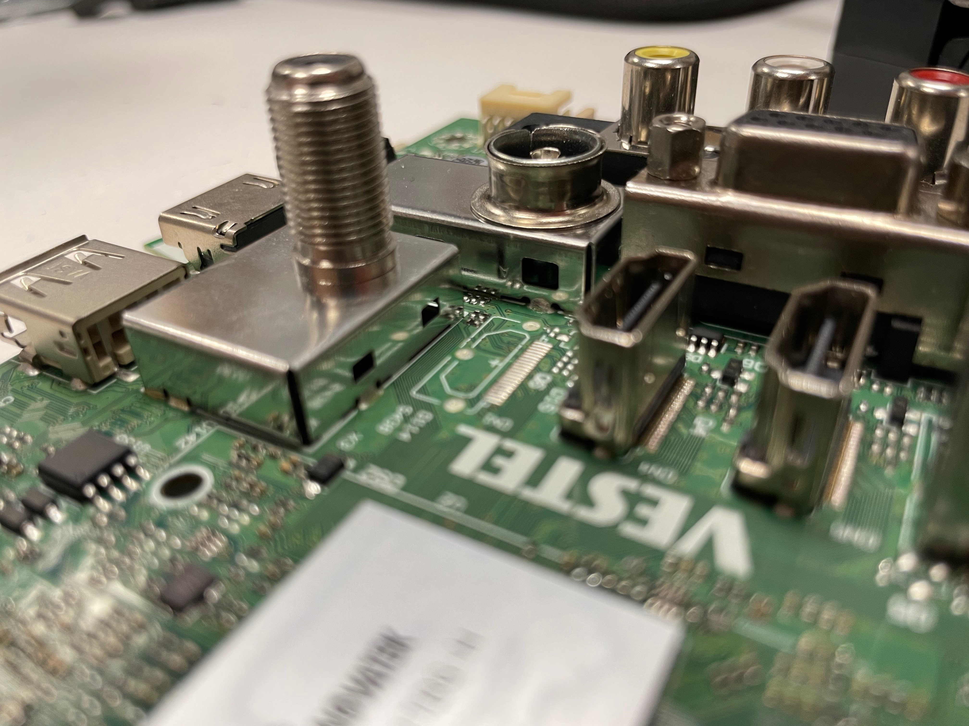 Aside of that we learned that by disassembling a recent model HITACHI television 📺 and web-researching the parts inside that the same PCB (printed circuit board) produced by a single chip-giant can be sold to several (direct market-rivals) electronics-companies and they can sell it to different customer segments by choosing to in- or exclude certain functionalities on the same single PCB. In the case of our HITACHI tv this was shown as the unused outlines of where an HDMI-port would be in a more expensive model of the same brand.