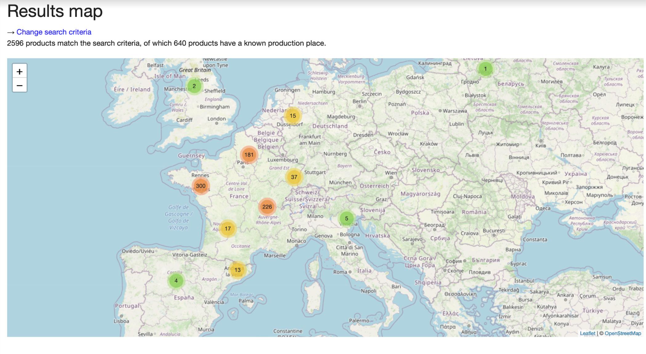 Map from open food facts