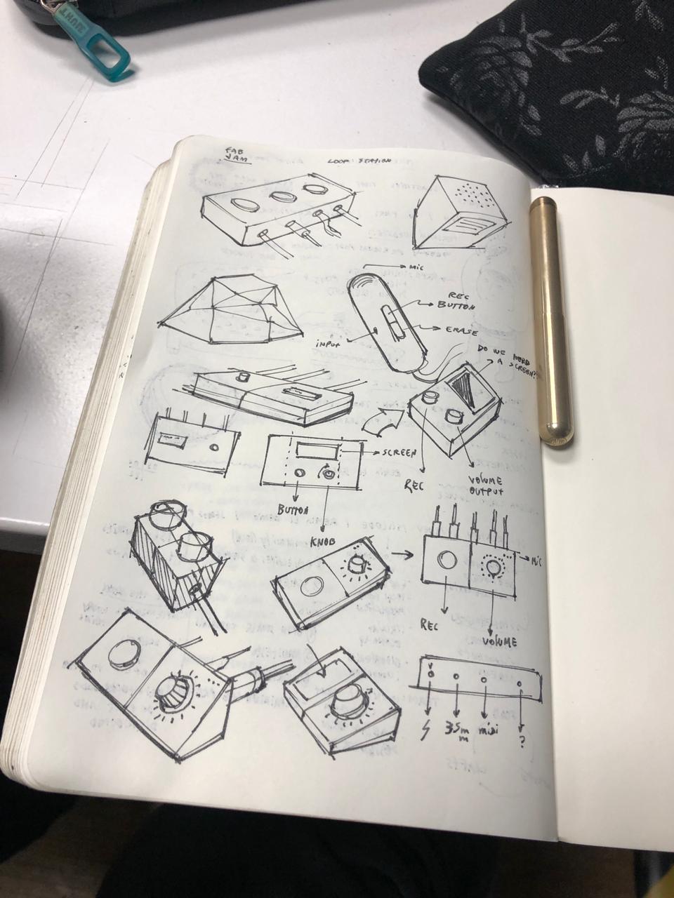 With Joaquin the idea quickly materialized to build on last term's intervention to further investigate the musical side. For that we are planning to build a modular, open-source loop station called Open Jam Box. The steps so far were centered around defining the concept, mapping out inspiration and stakeholders, exploring the technical feasibility of different technical setups and sketching hardware designs, both on paper and as 3D models for later digital fabrication. This project will accompany us throughout most of FabAcademy, as there are a multitude of connection points between the both tracks.